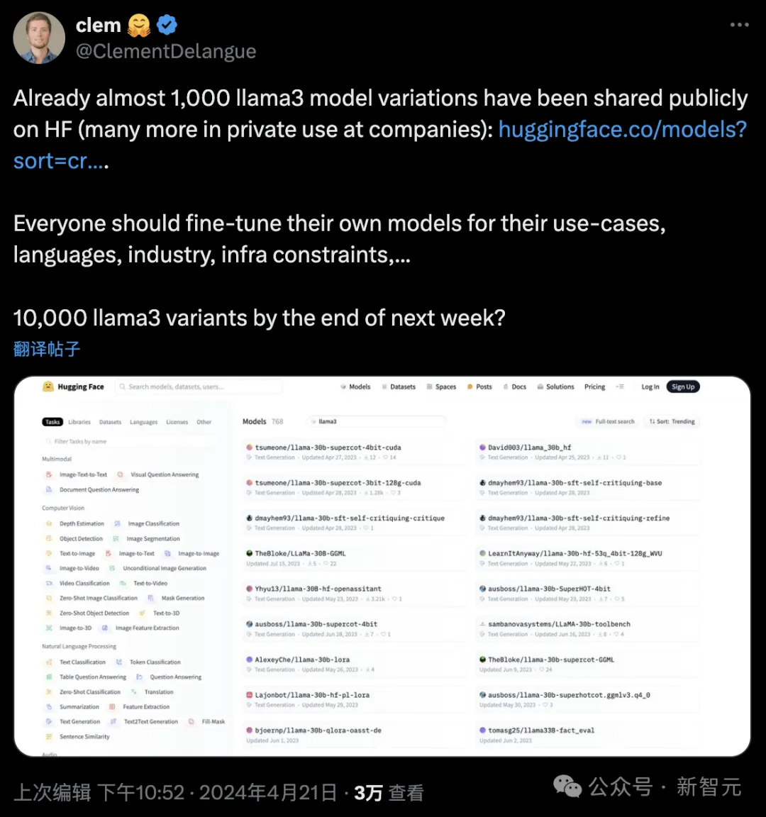 其真Llama3领布三地后,曾有1000个微调模子正在Hugging Face上领布。