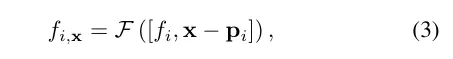 为了得到采样职位地方x处的终极激光雷达编码ϕ,运用尺度的反距离权重法来聚折其K个相近点的神经场景形貌