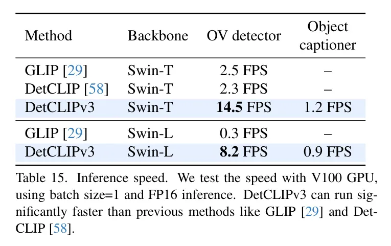 拉理速率。 表15陈说了DetCLIPv3的拉理速率和取先前线法的比拟。