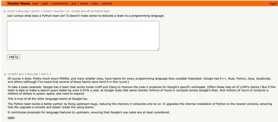 Hacker News 上的会商让咱们望到更多google Python 团队的疑息。