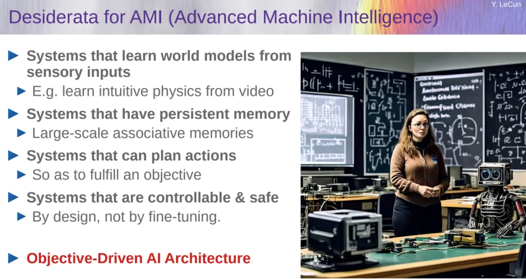 - 方针驱动的 AI 架构(LeCun 重点夸大了那一条)。