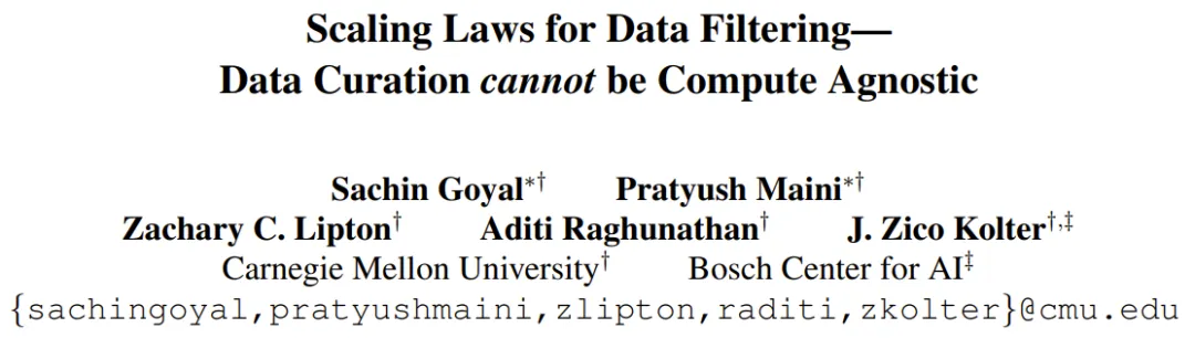 - 论文标题:Scaling Laws for Data Filtering—Data Curation cannot be Compute Agnostic