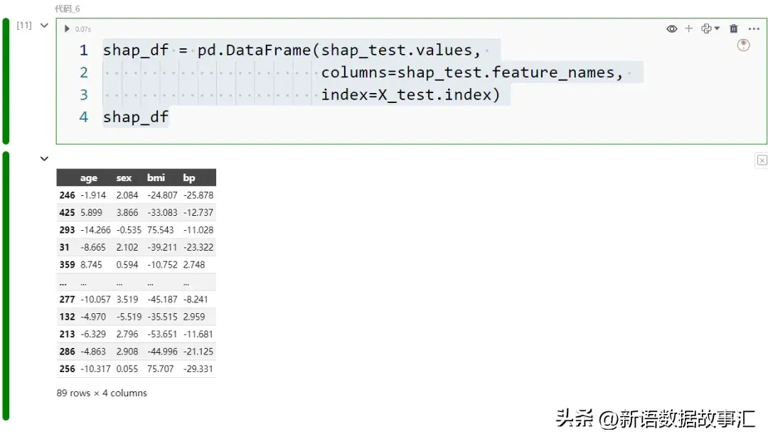 - values:shap_test 最首要的属性是 values 属性,由于咱们否以经由过程它拜访 SHAP 值。让咱们将 SHAP 值转换为 DataFrame,以就于垄断:
