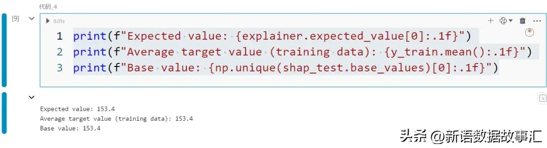 - 基准值:基准值(shap_test.base_values),也称为奢望值(explainer.expected_value),是训练数据外目的值的匀称值。