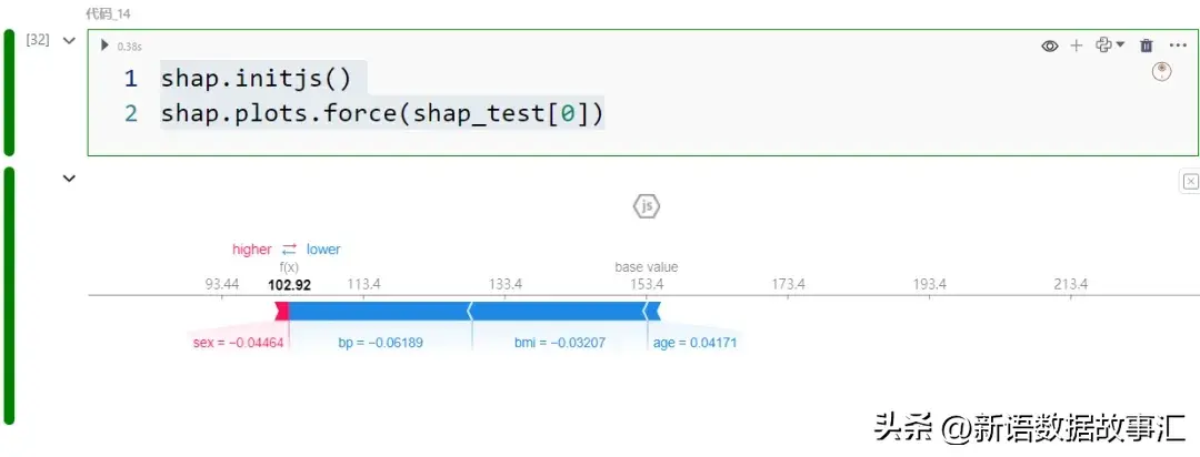 以及归回模子同样的,shap values 值也是蕴含base_values 以及values 值: