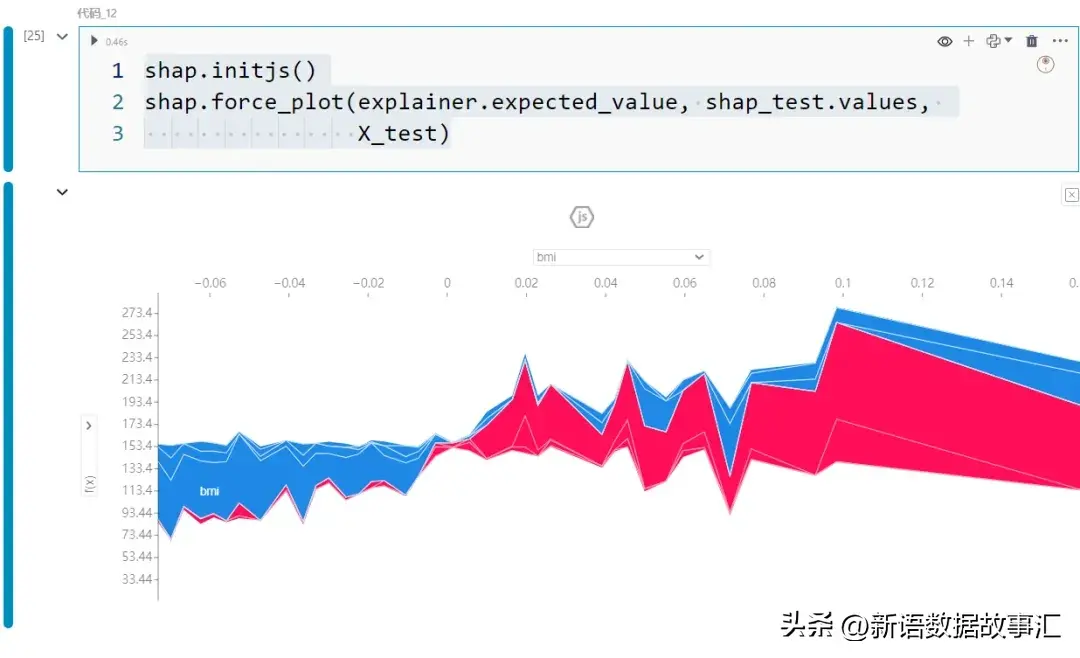 - Force plot/齐局:那个交互式图表容许咱们经由过程记载查望 SHAP 值的形成。
