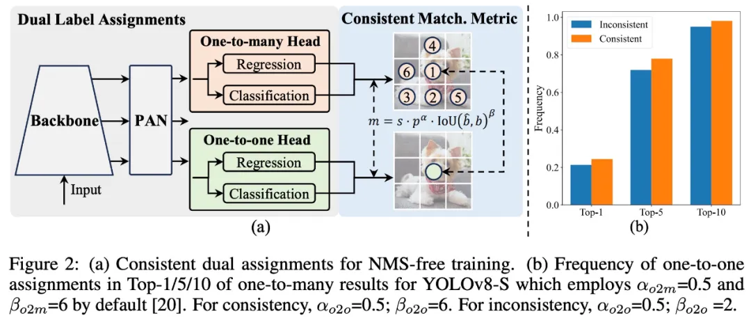 为此,研讨团队初次提没了 YOLO 无 NMS 训练的一致两重分派(consistent dual assignment),那使患上 YOLO 正在机能以及拉理提早圆里有所改良。