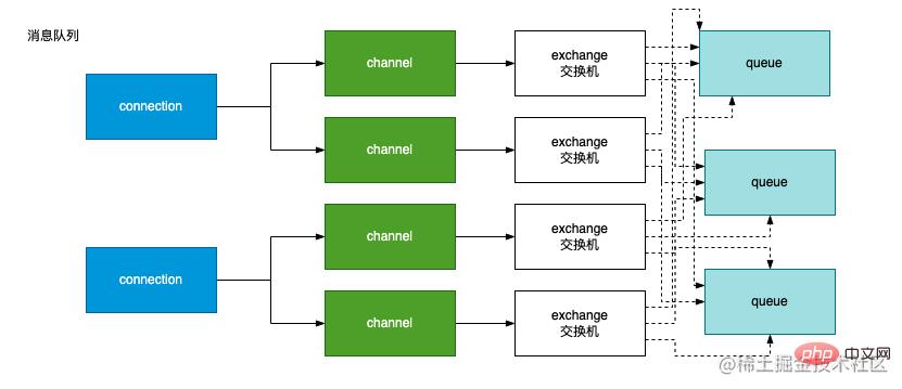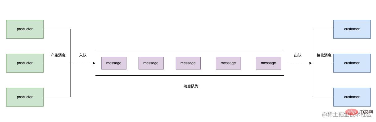 消息队列则是两个应用间的通信服务,消息的产生者将数据存放到消息队列中就可以立即返回,不需要等待消息的接收者应答。即:生产者保证数据插入队列,谁来取这条消息不需要管。消息的接收者则只专注于接受消息并处理。【相关教程推荐:nodejs视频教程、编程教学】