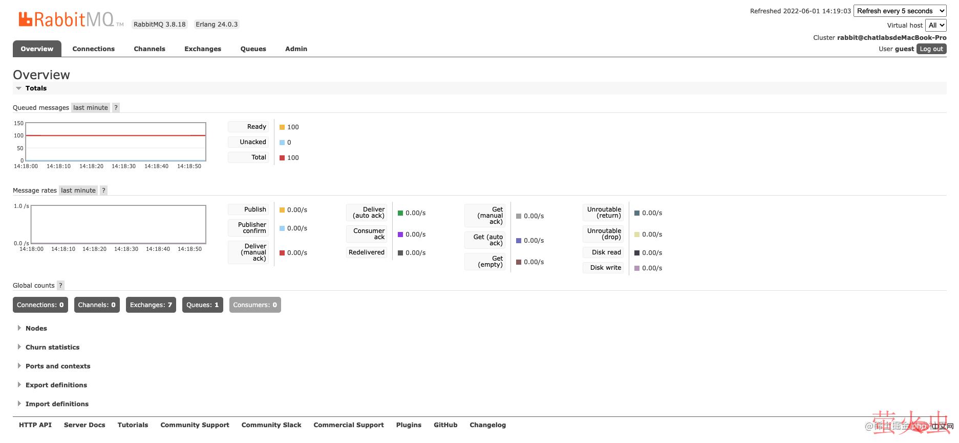 })();登录后复制运行后在后台可以看到新增了一个有100条消息的队列