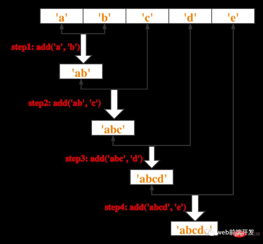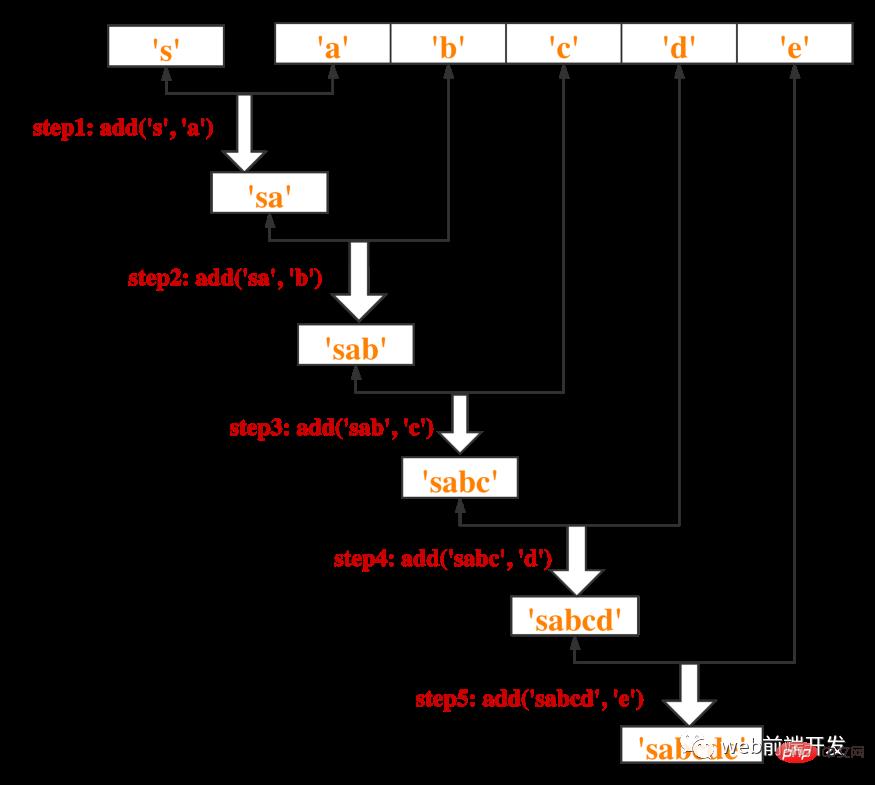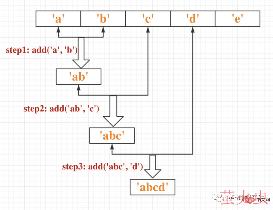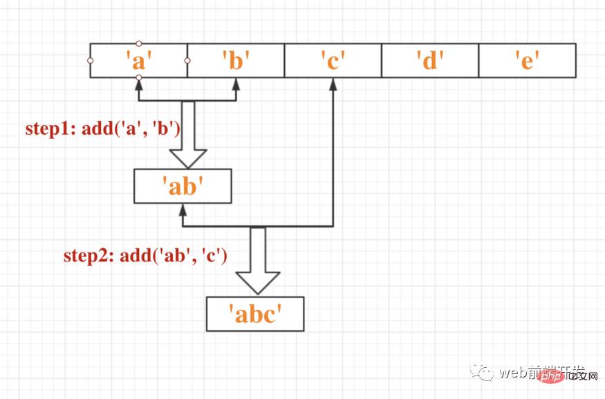 第一次计算后,我们得到结果'ab'。此结果将被缓存并在下一次添加计算中用作 param1。同时,数组中的第三个参数'c'将用作add的param2。