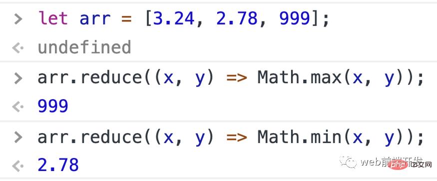 let arr = [3.24, 2.78, 999]; arr.reduce((x, y) => Math.max(x, y)); arr.reduce((x, y) => Math.min(x, y));