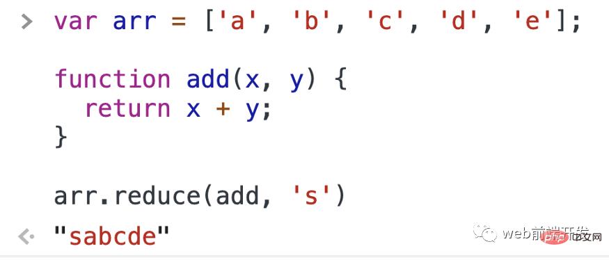 同样,reduce 会继续遍历数组中的元素,运行 'abc' 和 'd' 作为 add 的参数。