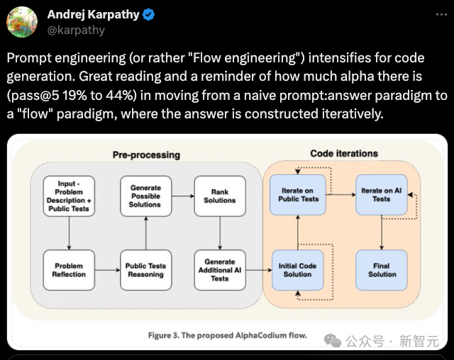 就连AK看了,都很兴奋地转发,认为如果代码生成任务能够以更科学的流程,而不是简单的问答方式来和大语言模型互动的话,性能确实还有不少提升的空间。