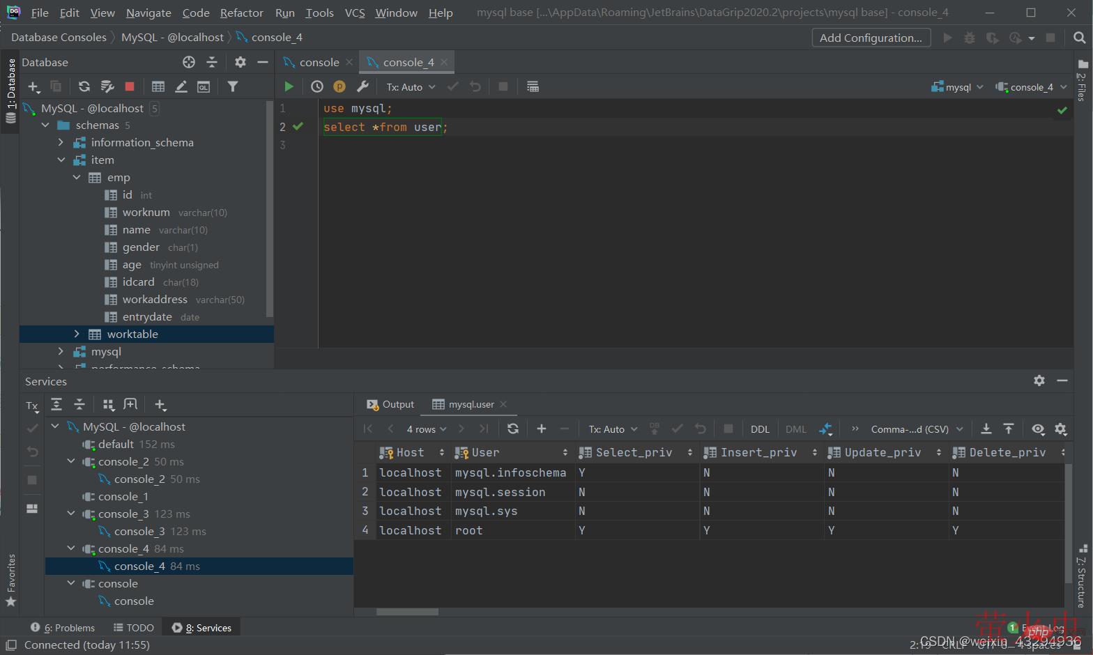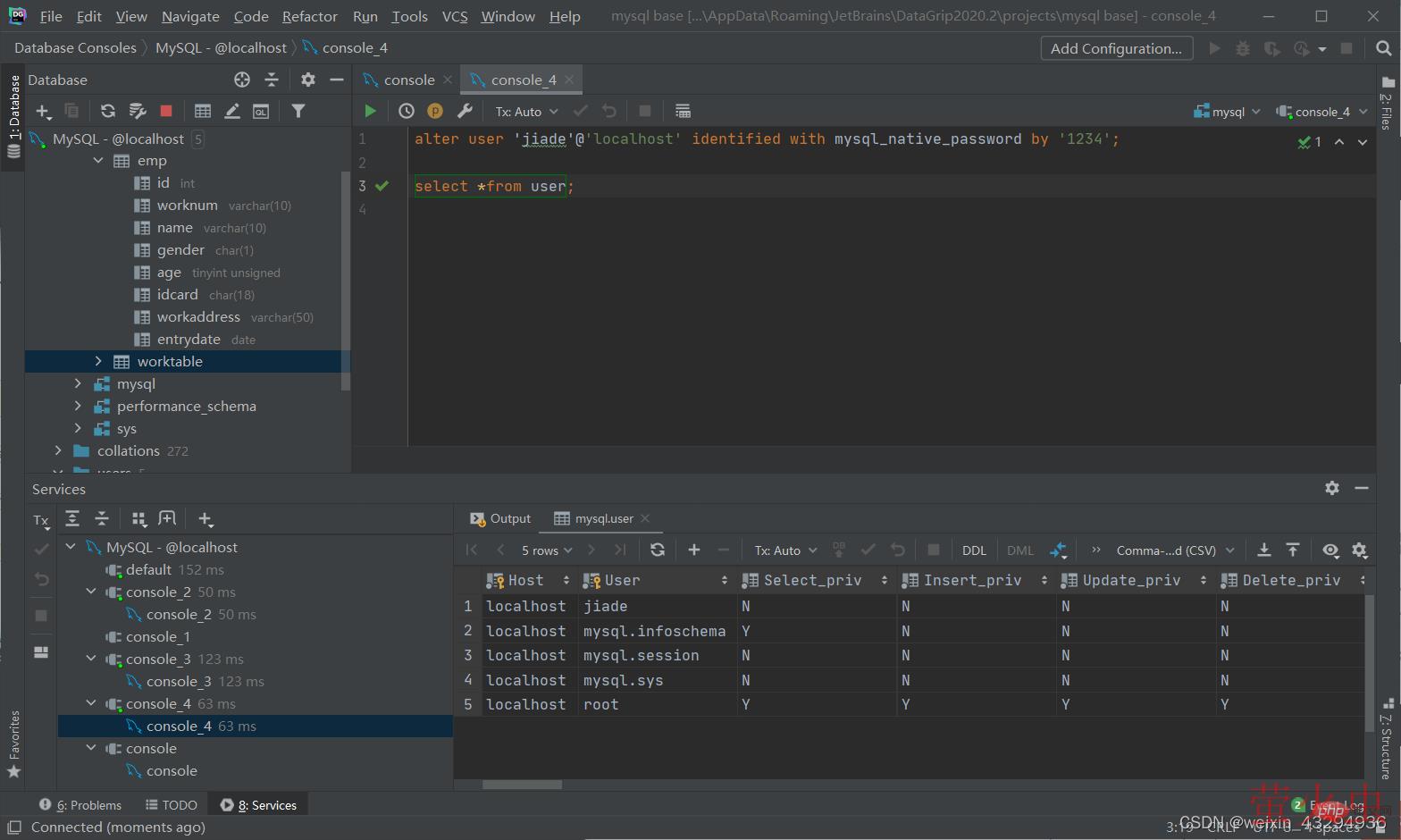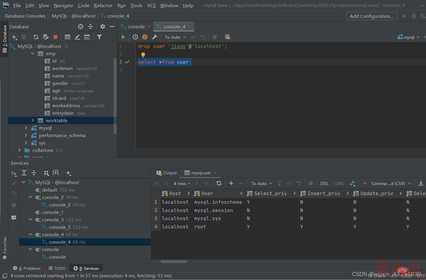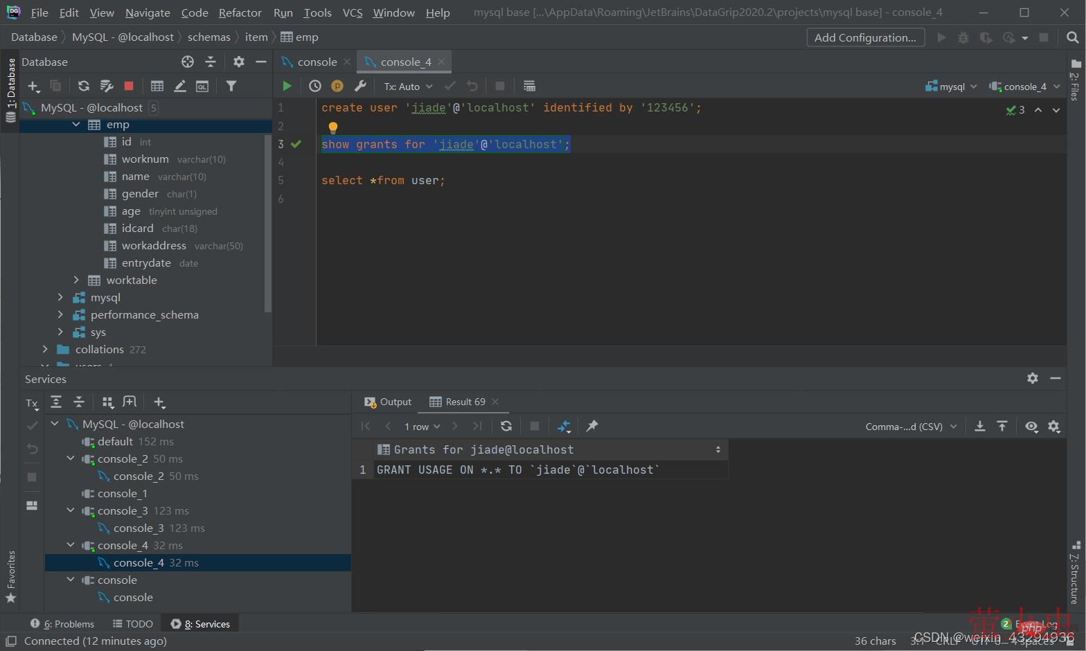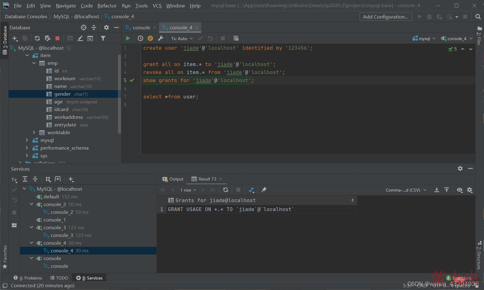 - 授权时,数据库名和表名可以使用 * 进行通配,代表所有