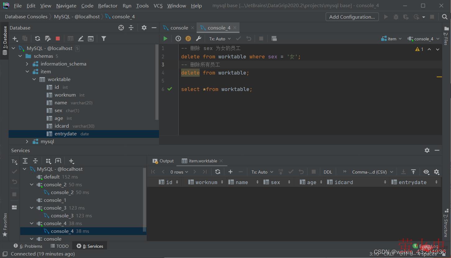 ·delete语句的条件可以有,也可以没有,如果没有条件,则会删除整张表的所有数据