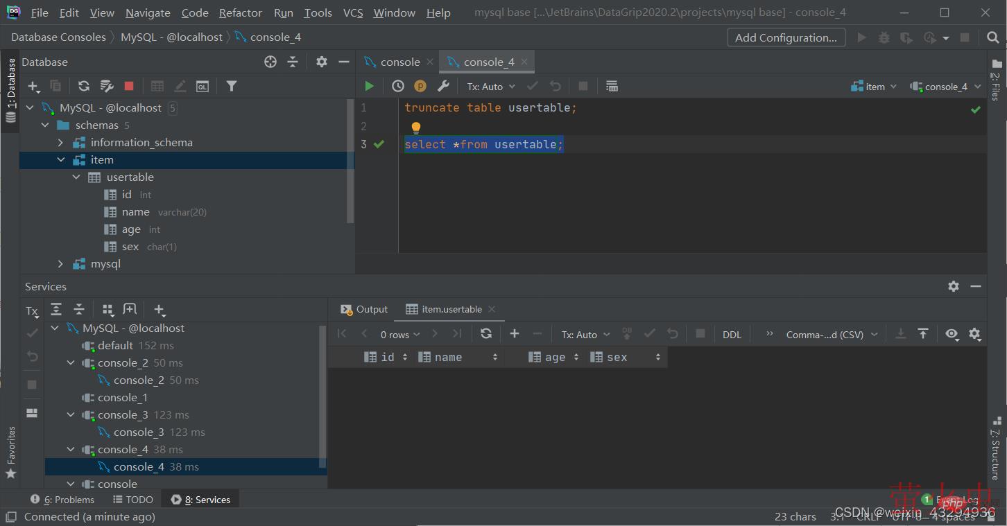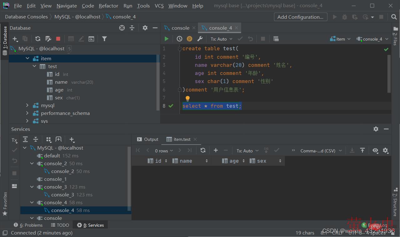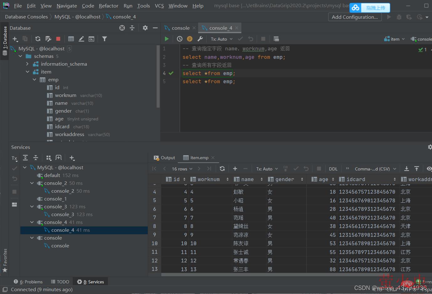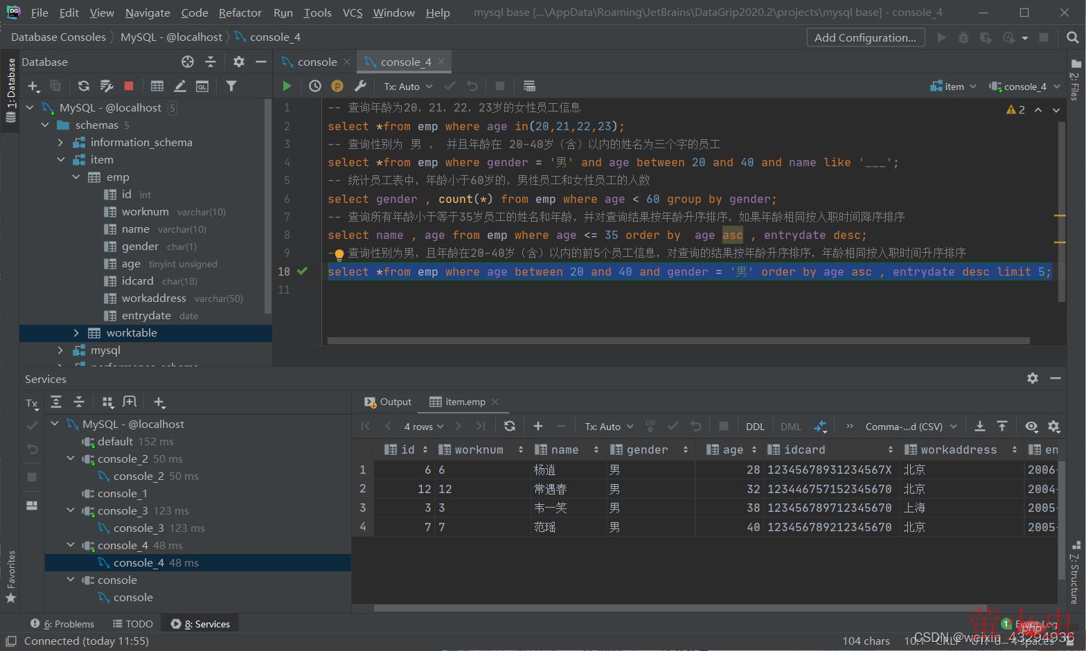 select 字段列表 from 表名 order by 字段1 排序方式1 , 字段2 排序方式2; #排序方式 #asc:升序(默认值) #desc:降序