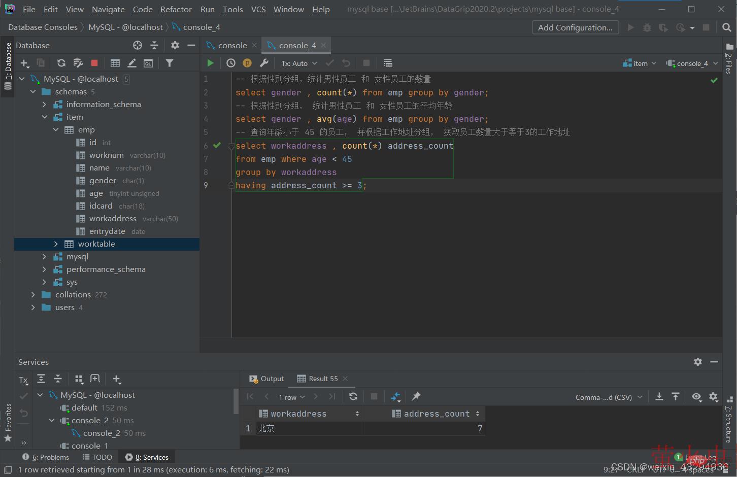 2.判断条件不同:where不能对聚合函数进行判断,而having可以。