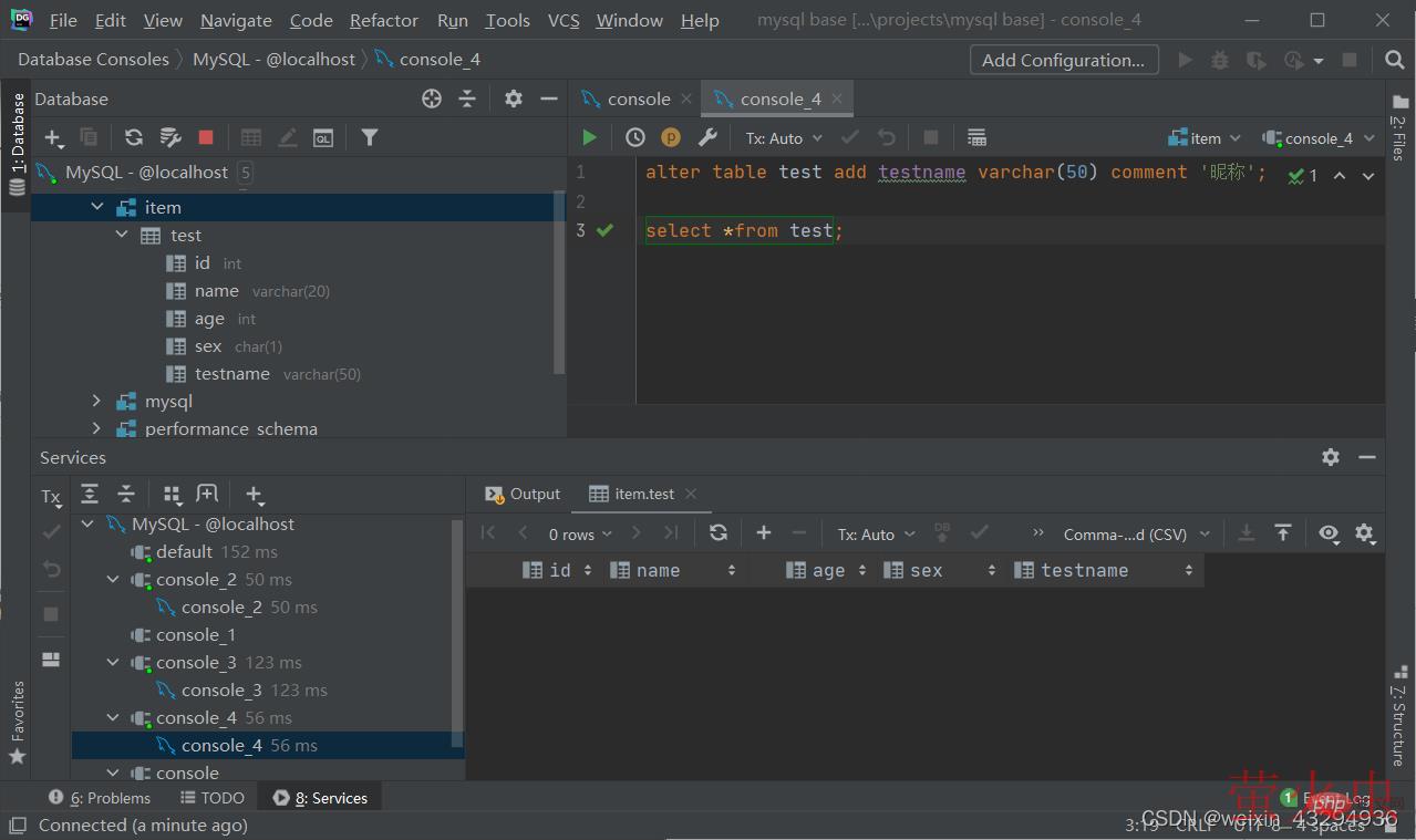 alter table 表名 add 字段名 类型(长度) [comment 注释][约束];