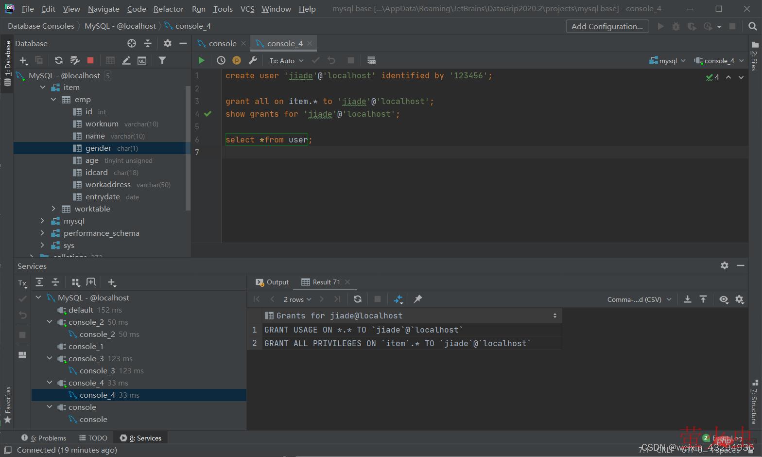 数据控制语言,用来创建数据库用户,控制数据库的访问权限