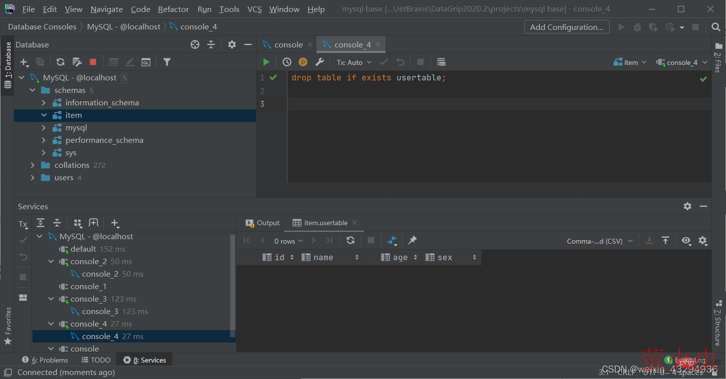 drop database [if exists] 数据库名; #中括号是如果存在相同名称的数据库就删除