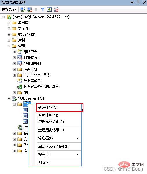 点击展开sqlserver代理,右键点击“作业”,然后选择新建作业。