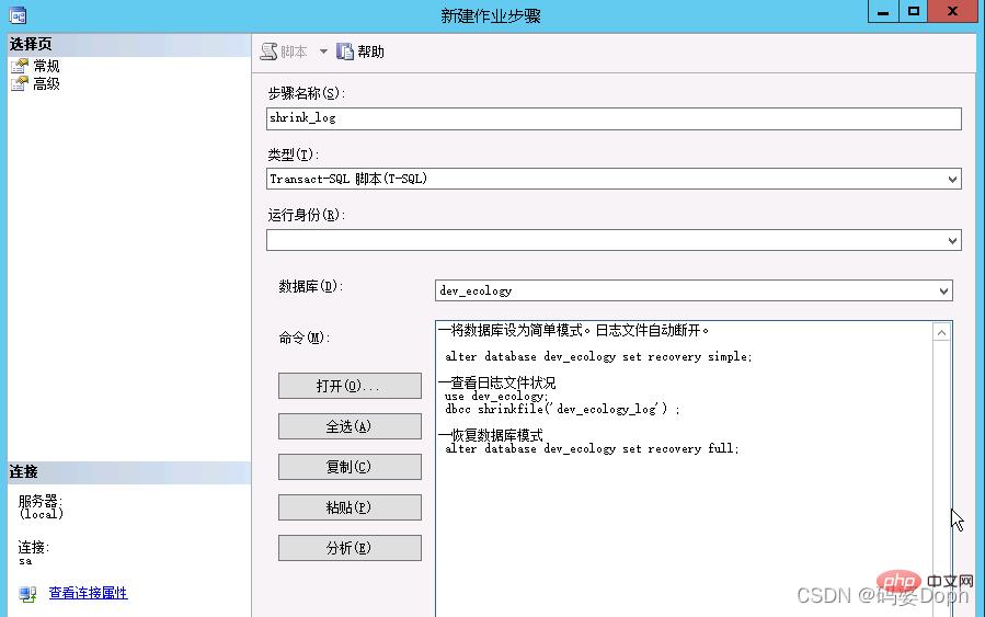 以上就是SqlServer创建自动收缩事务日志任务的图文详解的详细内容,转载自php中文网