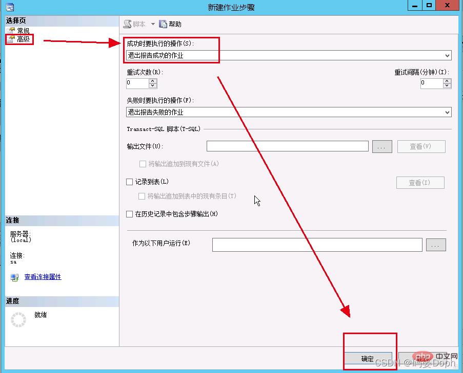 - “成功时要执行的操作”需要选择“退出报告成功的作业”,否则新建作业会报错。
