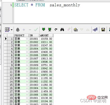 INSERT INTO sales_monthly (product,ym,amount) VALUES ('桔子','201906',11524.00);以上就是SQL窗口函数详解之排名窗口函数的使用的详细内容,转载自php中文网