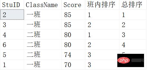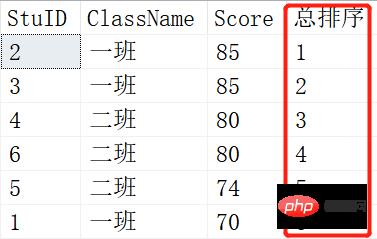 SELECT *, ROW_NUMBER() OVER (PARTITION BY ClassName ORDER BY SCORE DESC) 班内排序, ROW_NUMBER() OVER (ORDER BY SCORE DESC) AS 总排序 FROM Scores;