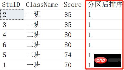 SELECT *,NTILE(1) OVER (ORDER BY SCORE DESC) AS 分区后排序 FROM Scores; SELECT *,NTILE(2) OVER (ORDER BY SCORE DESC) AS 分区后排序 FROM Scores; SELECT *,NTILE(3) OVER (ORDER BY SCORE DESC) AS 分区后排序 FROM Scores;