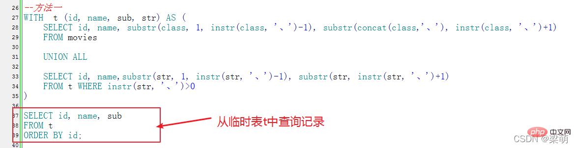 --方法二 SELECT m.name,t.column_value FROM movies m,TABLE(SPLIT(m.class,'、')) t;