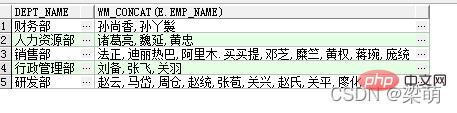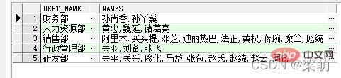 --方法二 SELECT d.dept_name, LISTAGG (e.emp_name, ',') WITHIN GROUP (ORDER BY e.emp_name) names FROM employee e INNER JOIN department d ON d.dept_id=e.dept_id GROUP BY d.dept_name;
