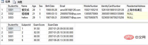 有两张表:Student(学生表)和 Score(成绩表),数据如下:
