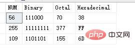 很简单的一张表,就一个字段num,我想把这个字段的int型数字分别转化成二进制八进制和十六进制的数值,有现成的进制转化的表值函数。