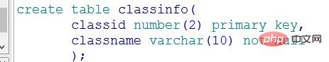 --classid 是班级表的id 数据类型是number(2)类型,我们默认给了2个长度,我们将班级id设置为主键方便其他外键关联