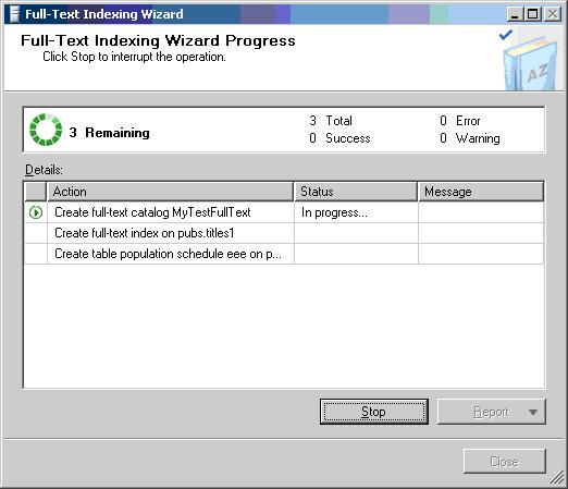select fulltextcatalogproperty('FT_testData','populateStatus')