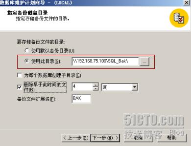 3:在SQL Server服务器中建立异地备份的维护计划,在“完全备份”和“事务日志备份”中,使用输入异地共享文件夹的UNC路径。