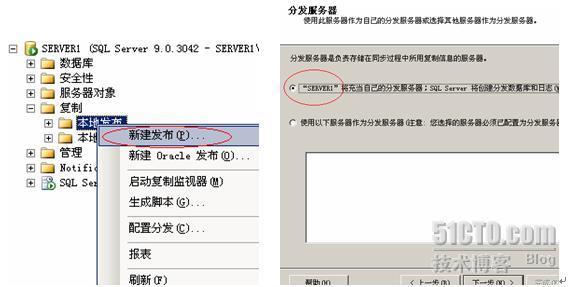 SERVER1上操作:实例名----复制----本地发布-----新建发布