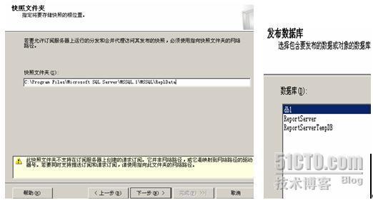 我们在这里选择将发布服务器本身作为自己的的分发服务器。下面指定一个快照文件夹,用于存放快照信息,并依次选择发布数据库DB1