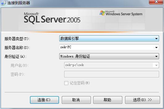首先用windows身份验证登录,windows身份验证不可以登录的请看我前面博客“ 解决SQL Server 连接服务器 错误2 ”中进行设置,在这里就不再多说了。