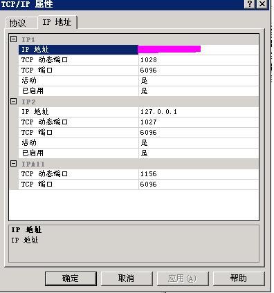 2,TCP端口(所有TCP的IP都要设置统一,一般是默认1433,但是我修改成了6096)