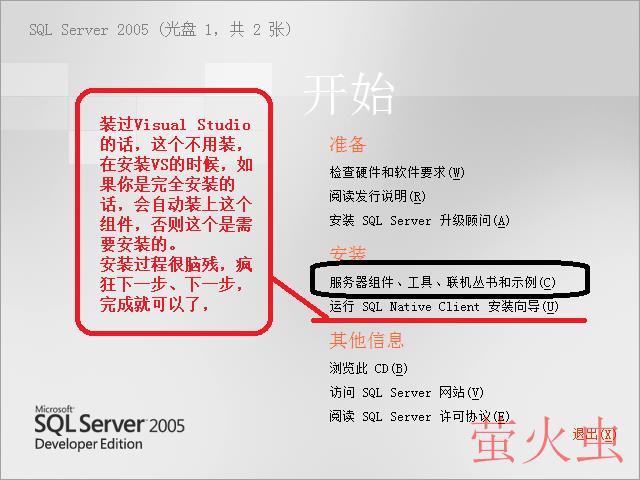 如果你安装过VS,你是见不到这个东东的。在安装VS时选择了SQL Server 2005 Express,那么很不幸,SQL Server 2005安装后,您将找不到Management Studio管理工具。SQL2005的安装程序是不会自动覆盖已经安装好的组件的。