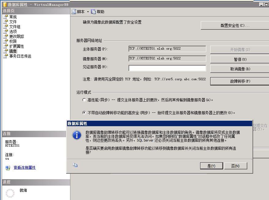 更改运行模式为高安全性(在高可用模式下不能进行手动故障转移)
