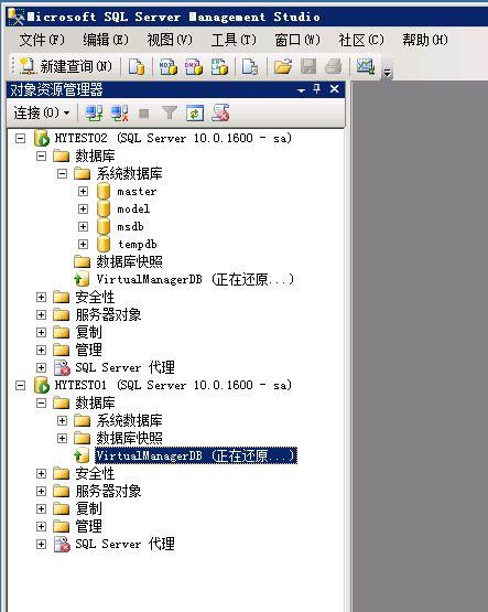 1、 点击是,开始向镜像数据库还原,下图为正在执行镜像过程