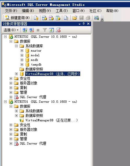 4、 此时显示镜像已近完成,主体数据库被转移到了原来的镜像数据库HYTEST02。整个过程1秒钟内完成