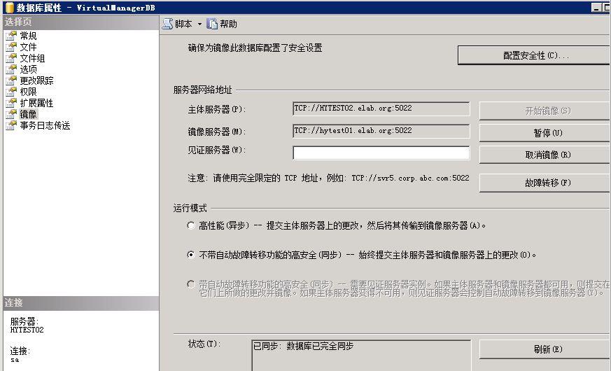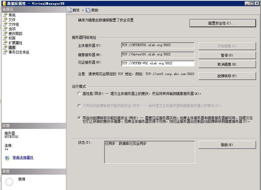 至此SQL Server 2008 的镜像高可用配置实例全部完成。