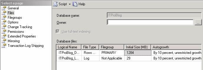 1. 在主数据库服务器CNBlogsDB1新建示例数据库CNBlogsDemo(注意Recovery mode要使用默认值Full,只有这个模式才能进行事务复制),然后建立一张测试表,比如:CNBlogsTest。