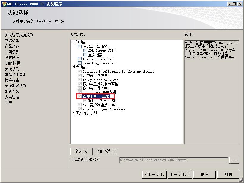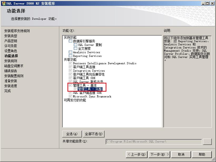 注:如果只需要安装管理工具,只需选择基本或完整模块。