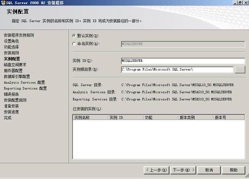我们这里安装一个默认实例。系统自动将这个实例命名为:MSSQLSERVER。