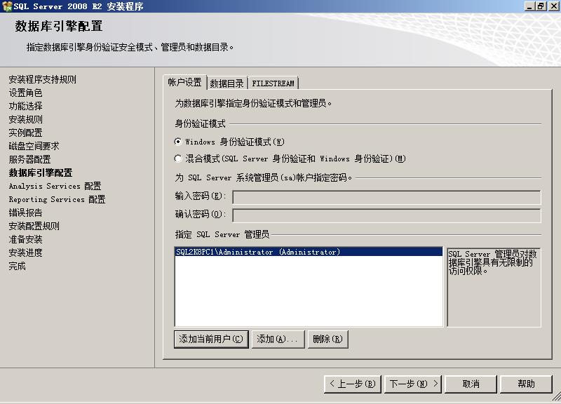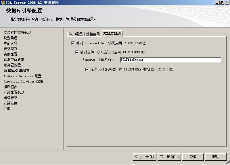 数据库引擎的设置主要有3项。
